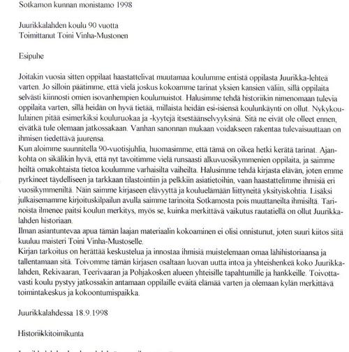 Juhla -Juurikka 1998 , Juurikkalahden koulu 90 vuotta, Toini Vinha-Mustonen