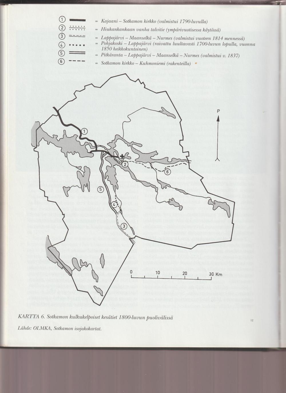 2. Vesiteistä maanteihin - Tähän alkuun voisi lisätä kertomuksen Sotkamo-nimen synnystä. joka julkaistiin Uusi Suometar-lehdessä 16.10.1874 no 121 — Mistä Sotkamo on nimensä saanut? U. S:n 47 numerossa oli Mallasweden ja 92 n:rossa Haukiweden synnyt mainittu. Saataneempa siis „Sotkamonkin" syntymänimi ilmoittaa. Tämän nimen todistawatkin luonnolliset syyt kukaties todeksi. — Ensin täytyy tehdä wähäinen selwitys Sotkamon asemasta, jos mieli saada tämä nimi selwille. Oulujärweltä ylöspäin noustessa, Sotkamon pitäjän keskipaikoilla, kääntyy Sotkamon wesistö tasawinkkeliin pohjoista kohti kulkemaan; toinen lyhempi haarawesistö (nimeltä Sapson wesistö) kääntyy sitä wastaan winkkeliinsä etelää kohti kulkemaan.- Nämä molemmat wesistöt toisistaan erotessa owat niin saarilla ja kaitaisilla salmilla sotketut ja mutkaiset, että se on oudolle matkustajalle aiwan luonnotonta, että pohjoista kohden kulkewa wesistö ylettyy pidemmälle. Näitten wesistöhaarojen wäliä edelleen päin, ja siis yhtä suuntaa Oulujärwestä tulewan pääwesistön kanssa, nousee wielä erittäin, muutaman kolmen wirstan pituinen wesistö, joka matkasuunnan mukawuudella wiehättää matkustajan puoleensa; tämän wesistön päässä, noin muutama wirsta wesistöjen ristiyksestä, aukenee noin kahta wirstaa pitkä ja puoltatoista wirstaa leweä järwi, jota nyt sanotaan Sotkamo-järweksi. — Tämmöinen on nyt keskusasema wesistöjen suhteen Sotkamossa. Siis nyt kansan suussa säilynyttä Sotkamon nimi-tarua selwittämään: